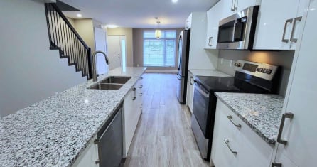 - Contemporary finishes and kitchen with granite counter